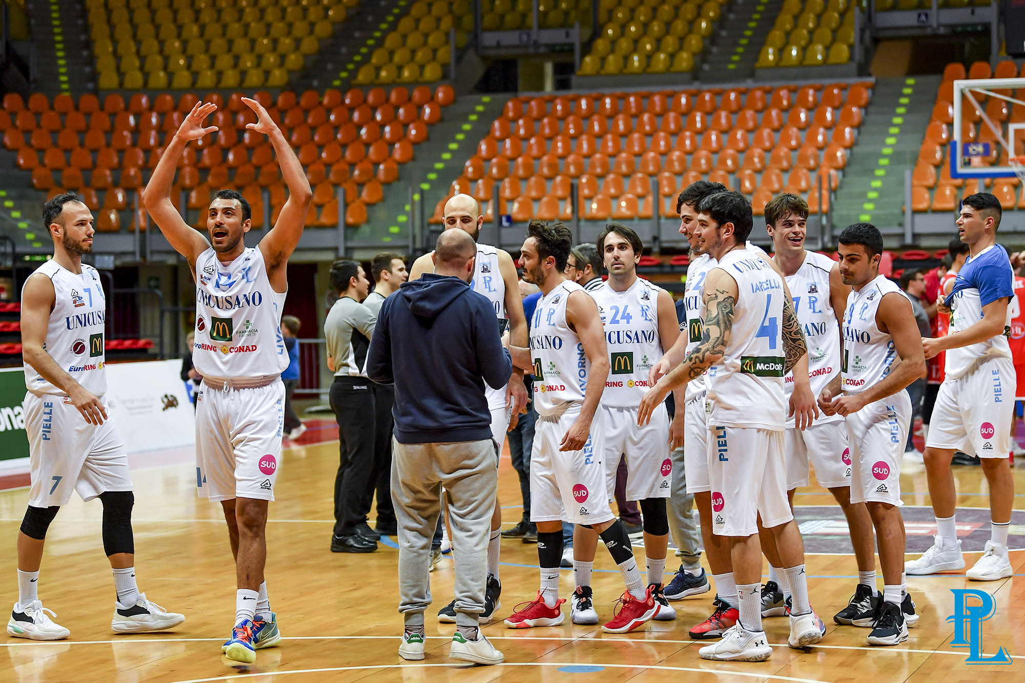 Nel secondo quarto una sfuriata di Luca Campori (14 con 3/4 dall’arco e 11 rimbalzi) dona alla Pielle 10 punti di margine e fiducia in vista di una ripresa altrettanto cosparsa d’insidie. Salgono in cattedra anche Drocker (21) e Lemmi (13), mentre dentro il pitturato Lenti limita la fisicità di Di Pizzo che, senza il supporto di Castelli, si è spento alla distanza. La Unicusano, invece, è cresciuta ulteriormente con il passare dei minuti, tanto da accumulare 20 punti di vantaggiare e festeggiare una vittoria importante sia per la corsa salvezza, sia per la caccia ai playoff.