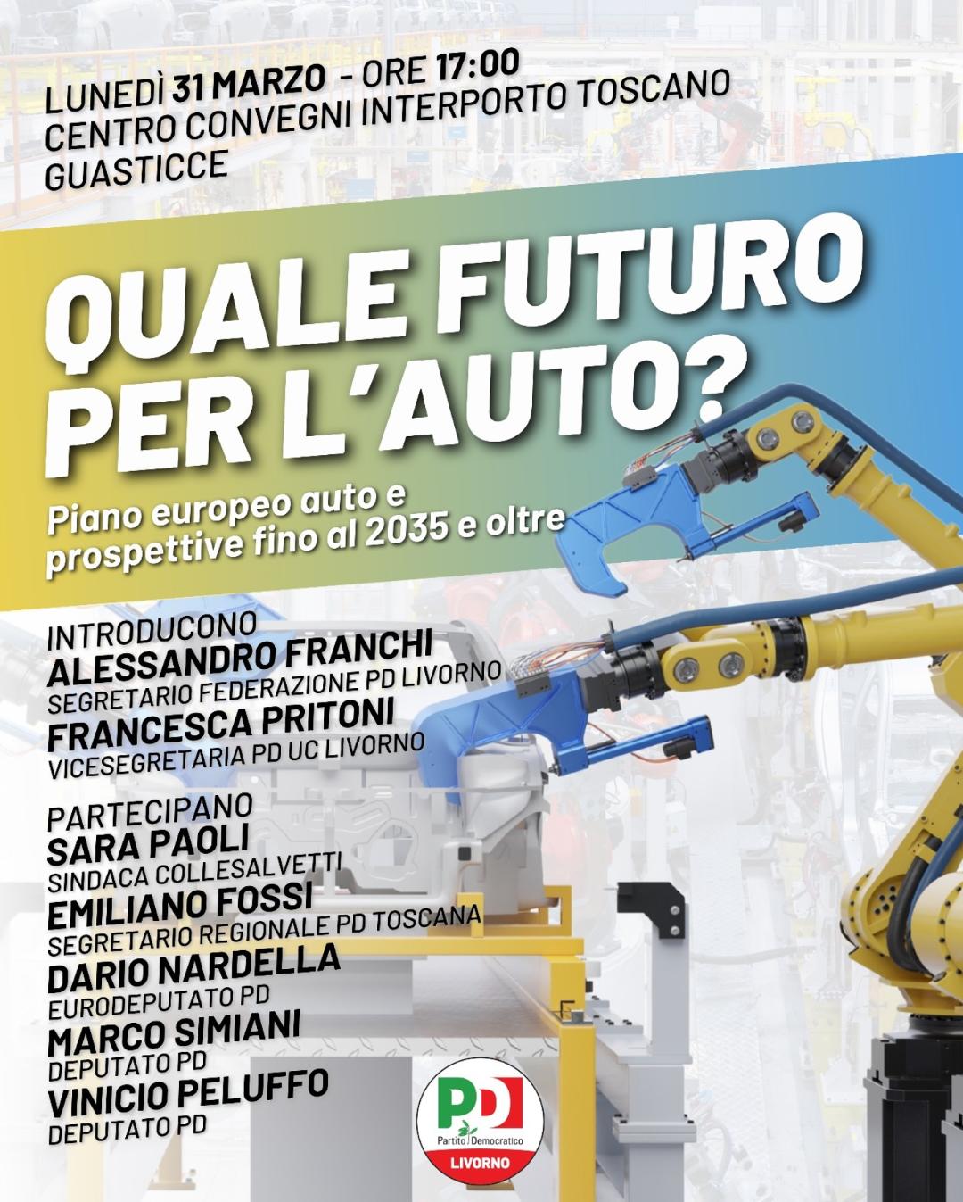 Lunedì 31 Marzo alle ore 17:30, presso il Centro Convegni Interporto Toscano a Guasticce, la Federazione del PD Livorno organizza un seminario dal titolo: “Quale futuro per l’auto? Piano europeo dell’auto, prospettive fino al 2035 e oltre”.