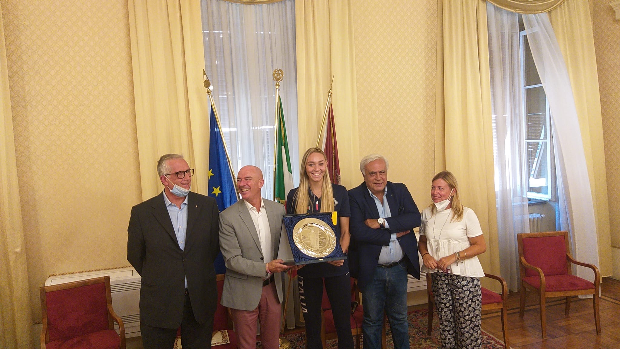 Nel corso della cerimonia il sindaco Salvetti ha consegnato alla giovane e alta atleta (1,90 cm) una pergamena e un piatto inciso, in cui si legge :