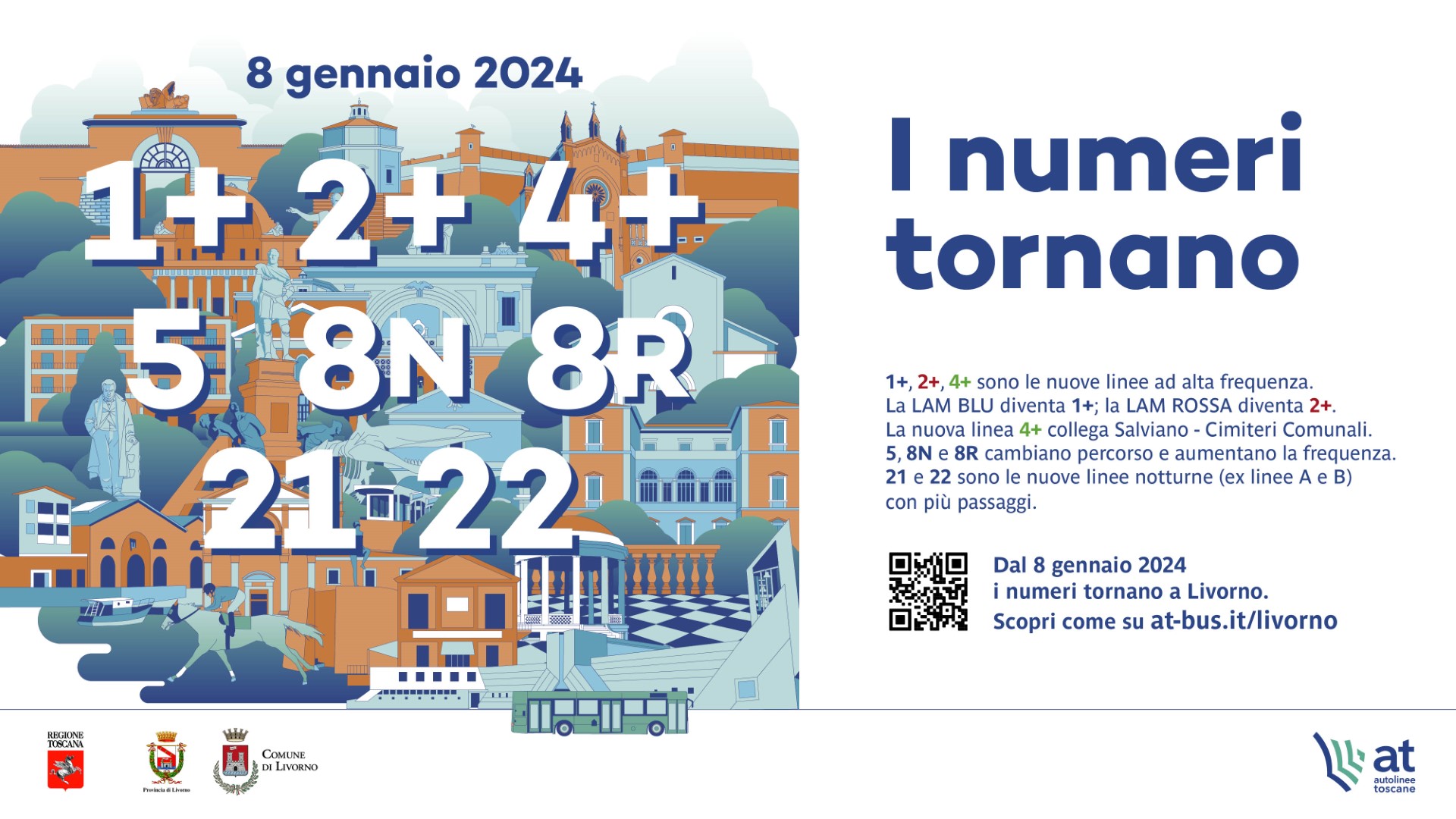 Per quanto riguarda la forma vanno in pensione i vecchi nomi della LAM e i loro colori (Blu, Rossa e Verde) e prendono il loro posto numeri seguiti dal segno +, che indica l’alta frequenza. La LAM BLU diventa quindi la linea 1+ (percorso blu), la LAM ROSSA diventa la linea 2+ (percorso rosso) e la LAM VERDE prevista dal Pums diventa la linea 4+ (percorso verde). Verranno utilizzati simboli universali che non hanno bisogno di alcuna traduzione e che sono facilmente utilizzabili al di là della lingua parlata e/o scritta. I numeri infatti sono riconoscibili e comprensibili da tutti, di più facile lettura per chi è affetto da disabilità cognitiva e da chi ha problemi nell’orientarsi in base ai colori (secondo i dati dell’Unione Europea, sono circa il 10% i maschi adulti affetti da daltonismo). I numeri sono un codice condiviso internazionale, utile per i tanti cittadini stranieri che sempre di più scelgono Livorno come meta turistica, ma anche per chi è appena arrivato e sceglie la città grazie alla sua profonda vocazione multiculturale. Un modo quindi per rendere più accessibili i servizi della città.